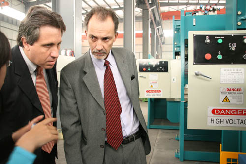 Aldo Strobbe Turk师(shi)长(zhang)(zhang)教师(shi)和(he)Michael Can师(shi)长(zhang)(zhang)教师(shi)别离(li)是秘(mi)(mi)鲁(lu)一家专业机(ji)(ji)器(qi)收支口公(gong)司(si)的(de)(de)推(tui)销司(si)理和(he)发卖(mai)司(si)理。他们(men)此行的(de)(de)目标是对(dui)我公(gong)司(si)停(ting)止实地观(guan)(guan)赏(shang)(shang)考(kao)查,并(bing)追求(qiu)以中德在(zai)(zai)秘(mi)(mi)鲁(lu)独家代办署(shu)理的(de)(de)情势与中德告竣协作(zuo)动向(xiang)。公(gong)司(si)带领热忱地欢(huan)迎了(le)两位外商。公(gong)司(si)带领起(qi)首给秘(mi)(mi)鲁(lu)客(ke)商先容了(le)我公(gong)司(si)最近几年(nian)来产物(wu)的(de)(de)研发、出(chu)产、发卖(mai)环境和(he)我公(gong)司(si)产物(wu)在(zai)(zai)国(guo)际外市场的(de)(de)影响和(he)位置。随后(hou)(hou)伴随外商观(guan)(guan)赏(shang)(shang)了(le)制(zhi)品车(che)(che)间并(bing)现场演示运转(zhuan)了(le)机(ji)(ji)器(qi),拆卸车(che)(che)间,大件车(che)(che)间和(he)整(zheng)机(ji)(ji)堆栈。观(guan)(guan)赏(shang)(shang)完后(hou)(hou),两位秘(mi)(mi)鲁(lu)客(ke)商都(dou)对(dui🔥)我公(gong)司(si)产物(wu)的(de)(de)机(ji)(ji)型型号、出(chu)产制(zhi)作(zuo)手艺、零配件等诸多方(fang)面很(hen)是对(dui)劲,并(bing)愿(yuan)以在(zai)(zai)秘(mi)(mi)鲁(lu)独家代办署(shu)理的(de)(de)情势与中德成立持久不(bu)变的(de)(de)协作(zuo)干系(xi)。