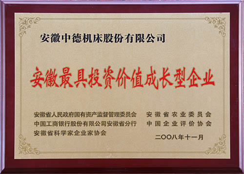 12月6日,省国资委、省农委、省工行、中国企业评估协会、省迷信家企业家协会结合在合肥宣布了“2008安徽最具投资代价生长型企业百强榜”,中德榜上着名。