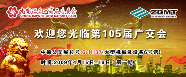 中德机床将参与第105届春季广交会,详细时候和地址是广交会一期,4月15—4月12日,琶洲馆大型装备及机器展区(6号馆),展位号 6.1H37。接待列位新老客户惠临。